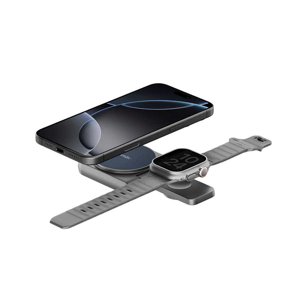 Qi2 認證,15W 無線快充|磁吸自動對位,單手即充|16mm 可折疊輕薄收納|手機+手錶/耳機,雙設備同時充電 |多角度支架,追劇視訊皆宜|BSMI 安全認證,過熱過流防護|附 USB-C 線