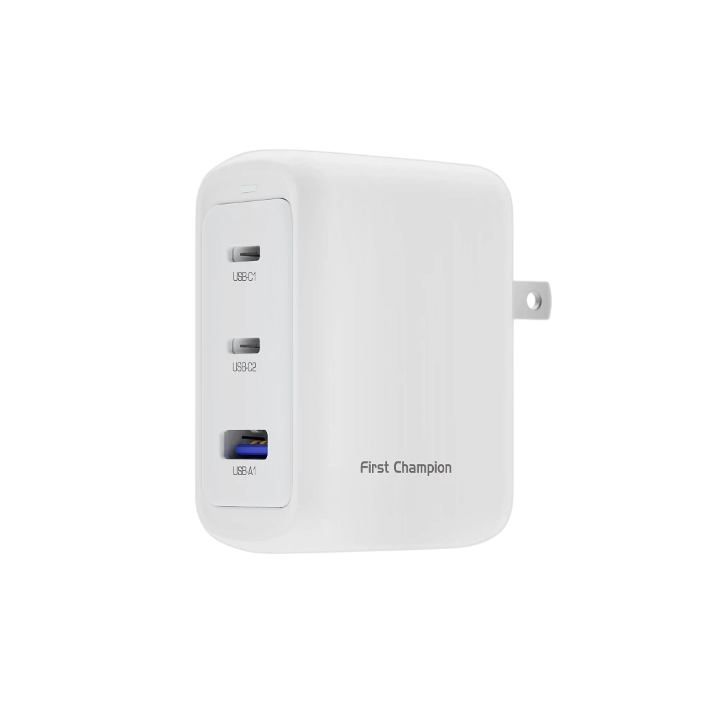 GaN 技術高效小巧|手機平板筆電齊充三孔輸出|USB-C 單孔最高 70W|智慧分流安全供電|USB-A 支援 QC 3.0 快充|多重保護安心使用|100–240V 全球電壓|摺疊插腳輕便收納