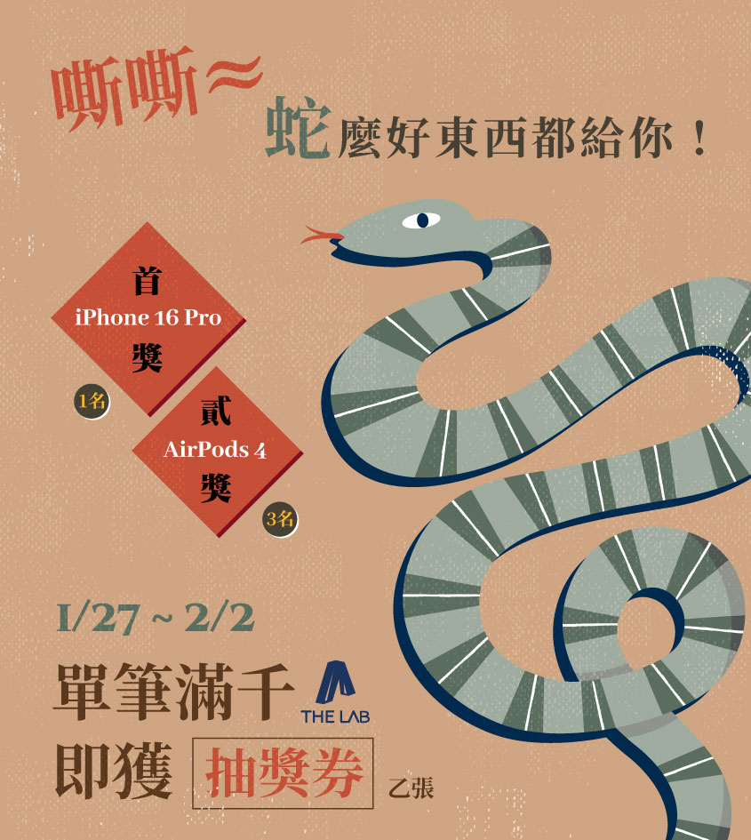 來 THE LAB 單筆消費滿千就能撕一張抽獎券。