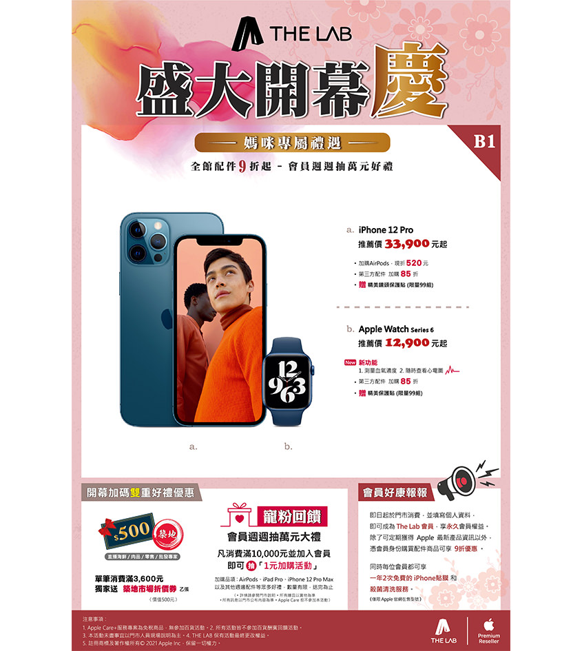 首頁 正在此頁面: 最新消息 正在此頁面: 母親節 專屬禮遇 母親節 專屬禮遇 最新活動 05 - 01,2021 母親節優惠,只到5/9!! 打卡還送神秘小禮物,快來門市體驗購物的樂趣! 回上一頁 最新活動 12 - 05,2021 Airpods Pro 限時優惠 上一則 拉伯抱報 18 - 04,2022 《拉伯抱報》01. 創刊號 下一則