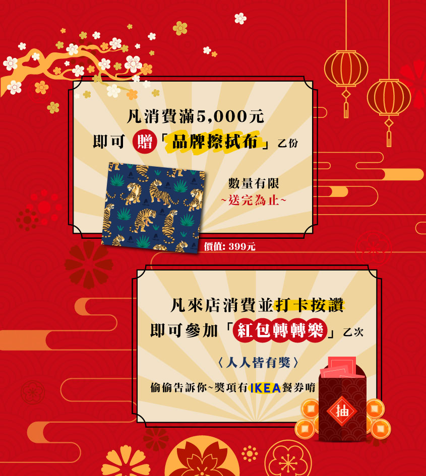 凡來店消費(不限金額 !)並按讚打卡,即可參加「紅包轉轉樂」乙次,人人有獎阿!