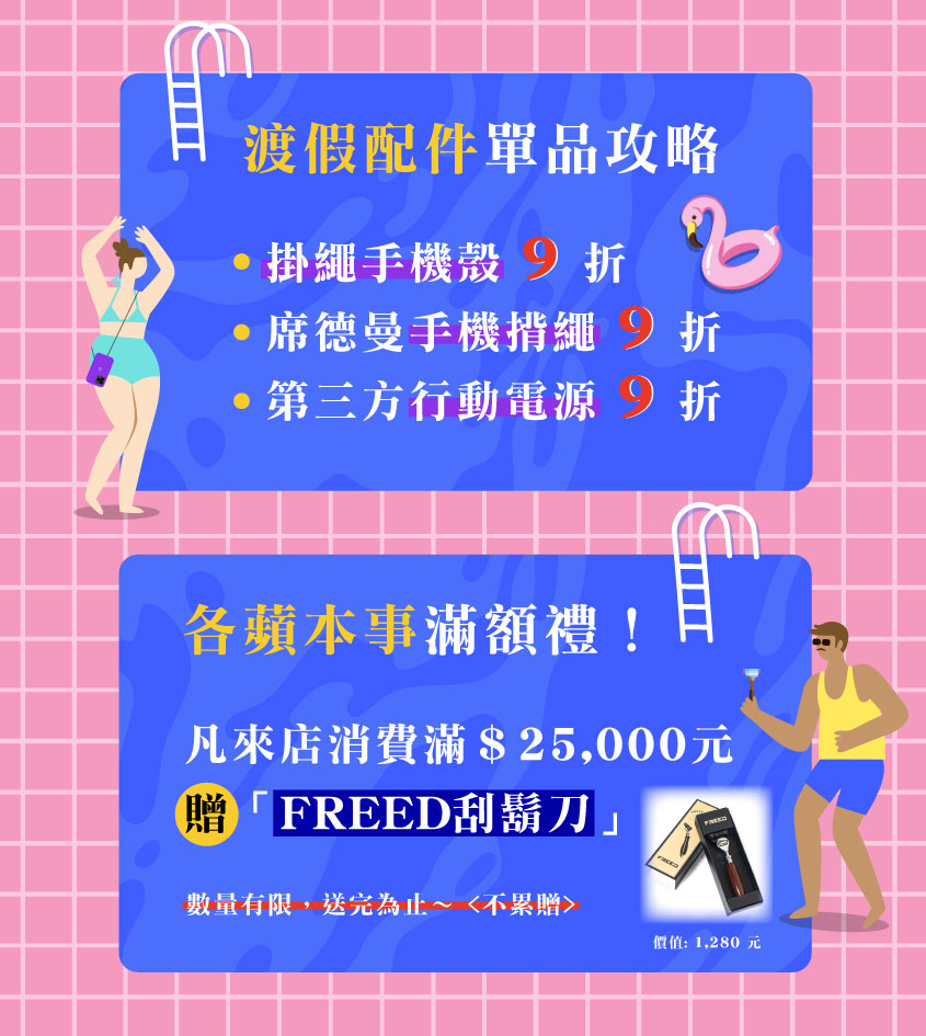 ➔消費滿25,000元,贈「FREED刮鬍刀」(價值:1,280元),不累贈,限量25支,送完為止!