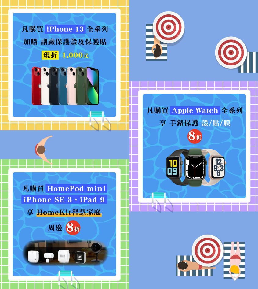 ➔凡購買 iPhone 13 全系列,加購副廠保護殼及保護貼,現折1,000元