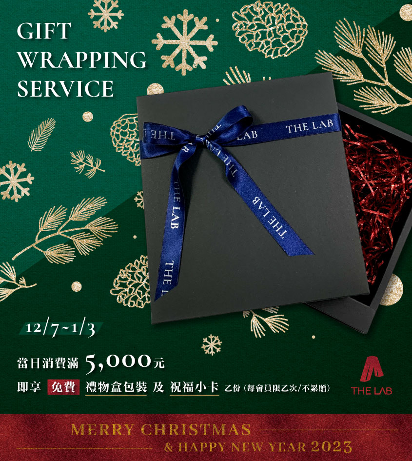 活動期間,單日於THE LAB 微風南京門市 消費滿NT.5,000 可享免費禮盒包裝+祝福小卡 乙份。